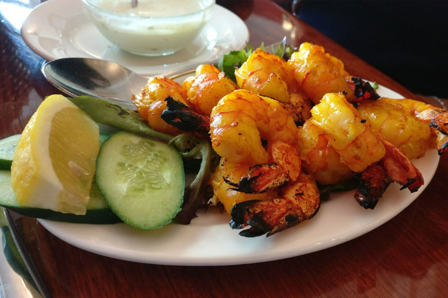 Cottage cheese (paneer) marinated with herbs, spices. capsicum and onion skewered and chargrilled in tandoor.
