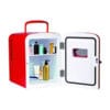 Compact retro-styled refrigerator silently cools drinks and snacks and can easily fit on most desks, bookshelves, in cars, and other places Size: Small. Color: Red.