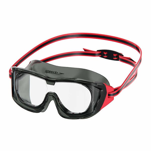 This goggle provides expanded viewing featuring curved lenses. Soft straps won’t snag hair so swimmers can stay focused on having fun while being protected with the built in UV protection and easy to adjust side clips.